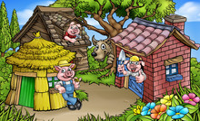 The fable is about three pigs who build three houses of different materials. A Big Bad Wolf blows down the first two pigs’ houses, made of straw and sticks, but is unable to destroy the third pig’s house, made of bricks. It is at that point the wolf climbs down the chimney and the pigs are saved because of a pot of boiling water that discouraged further intrusion.